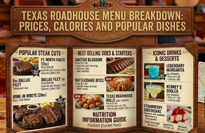 The Texas Roadhouse menu in 2026 offers a wide range of delicious meals with different price points and calorie levels. Whether you want a high-protein steak, a lighter chicken dish, or a filling burger, there is something for everyone.